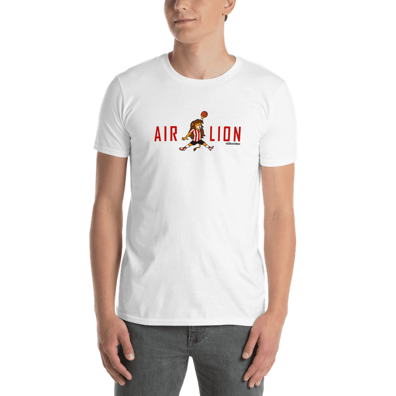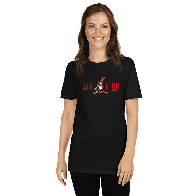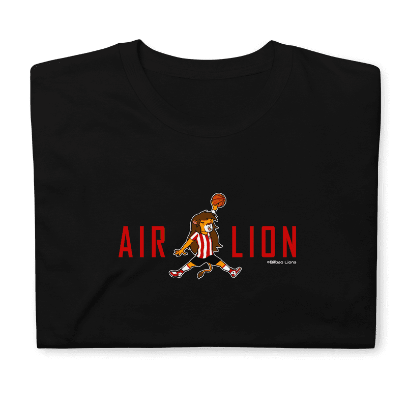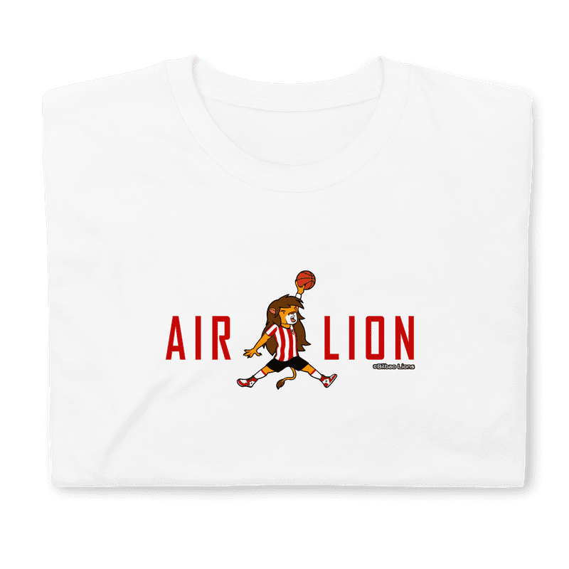 Camiseta unisex divertida de los leones del Athletic de Bilbao de la marca Bilbao Lions. Diseño original basado en el iconico logo de Air Jordan de Michael Jordan. Camiseta de venta exclusiva online. Gastos de envío GRATIS.