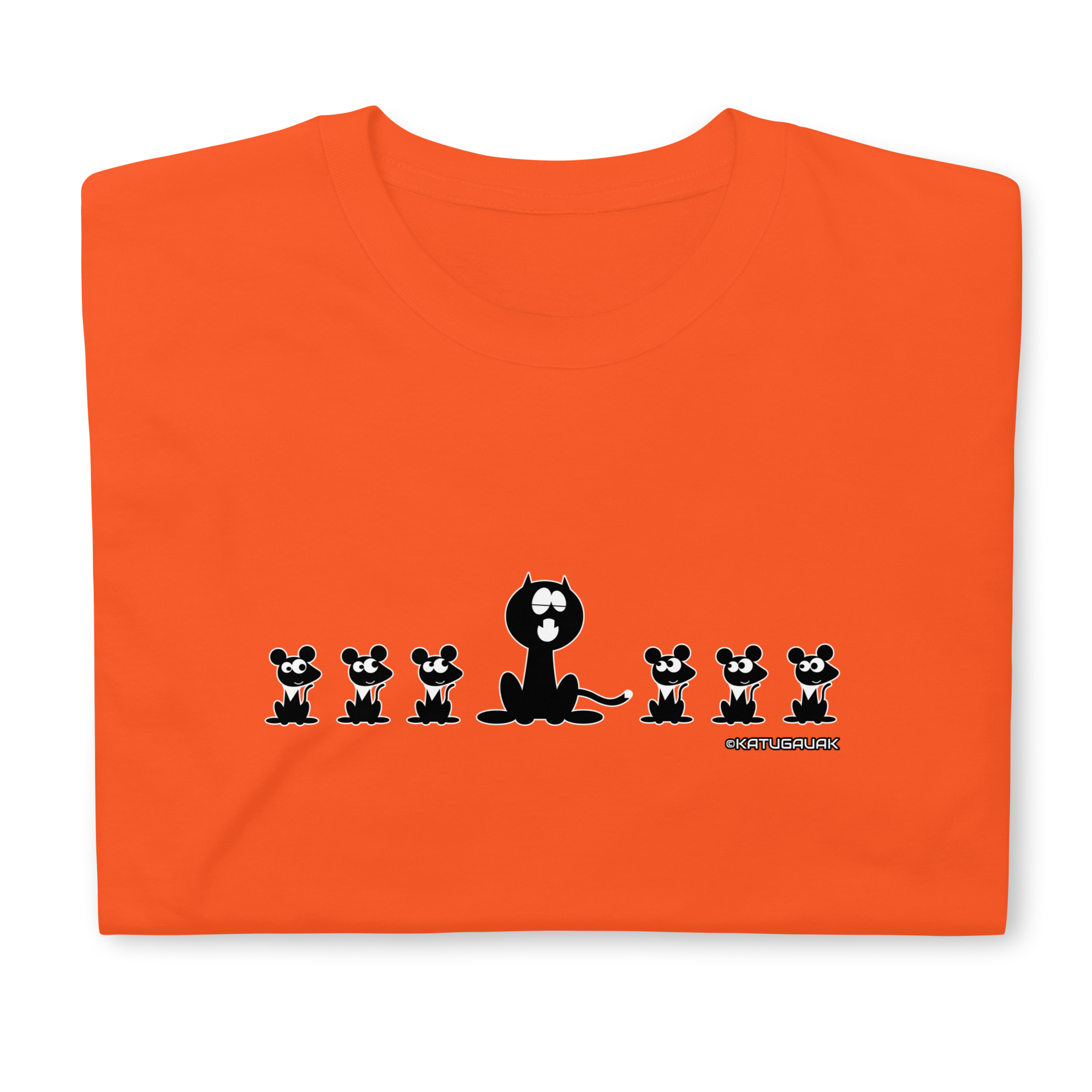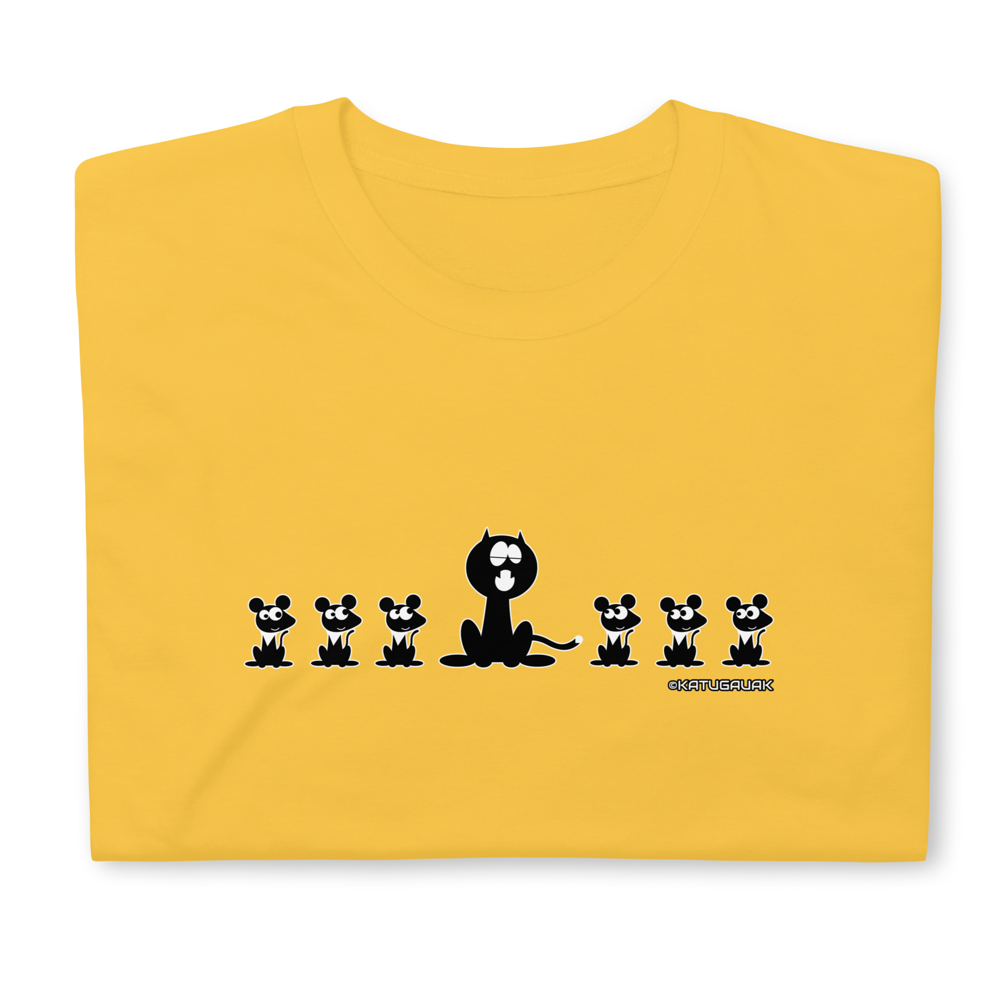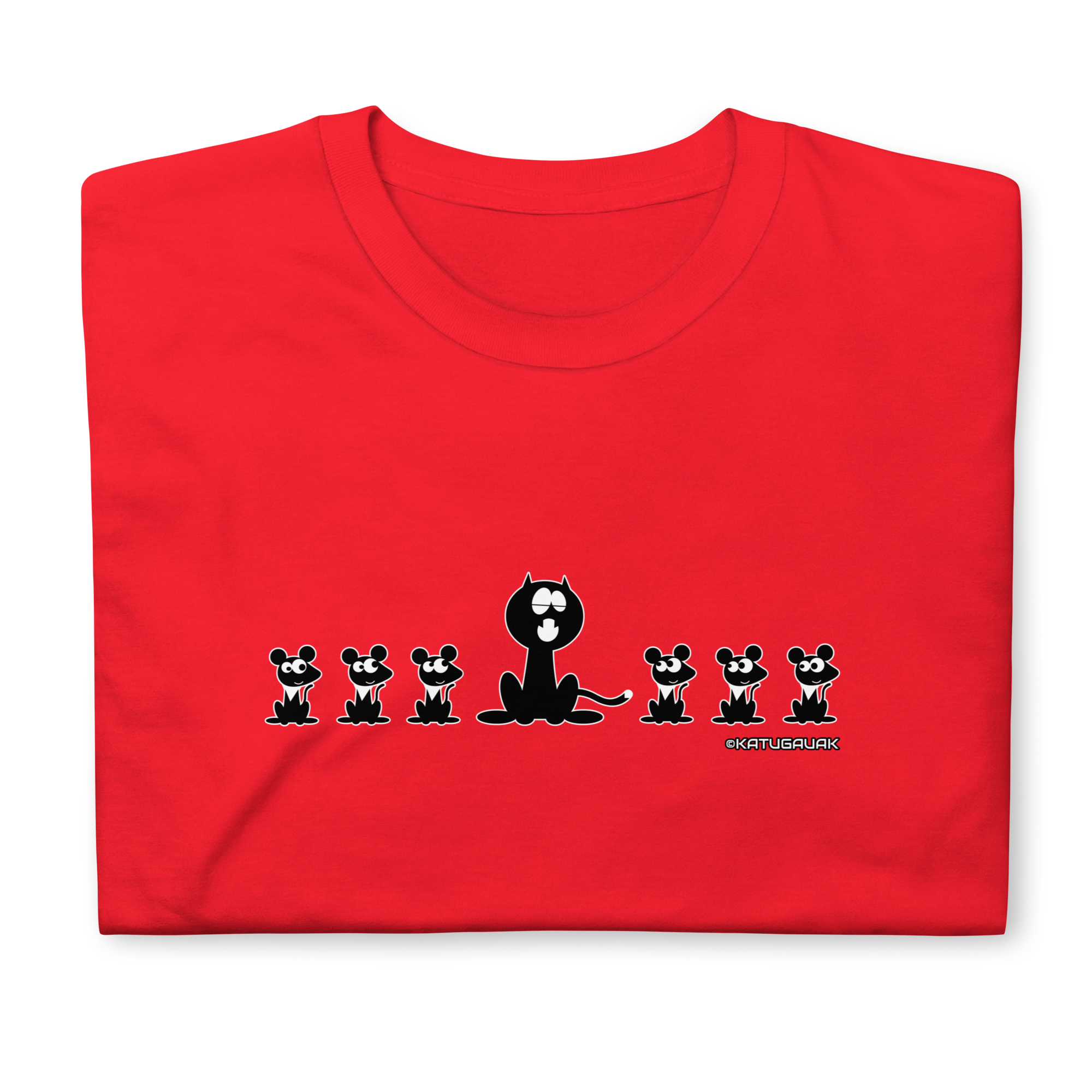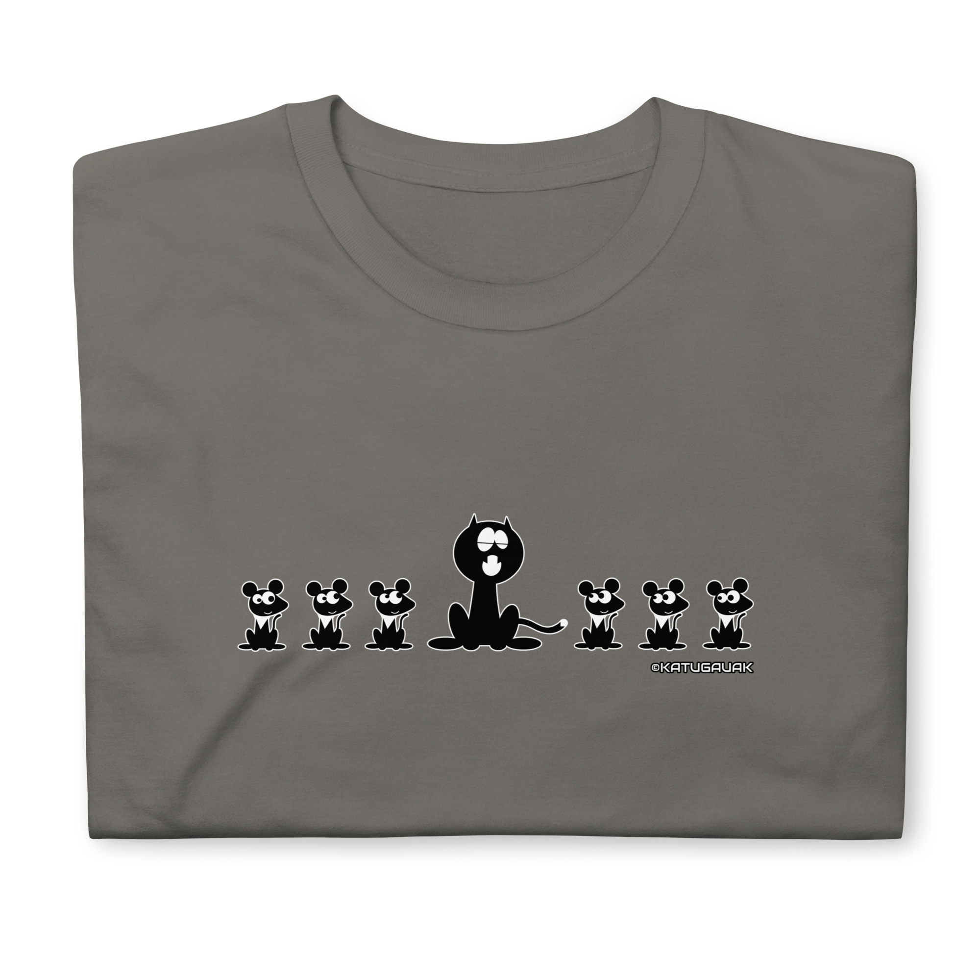 Camiseta unisex con diseño divertido Merienda de Ratones de marca Katugauak. Camiseta perfecta para regalo original y divertido. De venta exclusiva online.